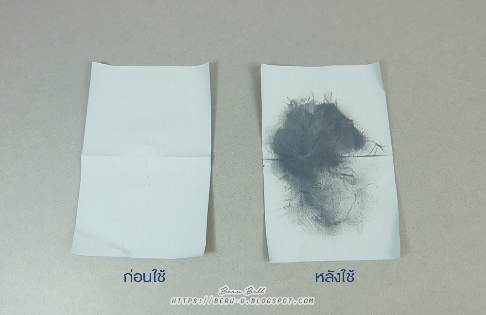 ก่อน-หลังซับมัน บอกก่อนนะคะ ว่าปกติเบลล์เป็นคนผิวผสมมันช่วง T-Zone สุดๆ และวันนี้ออกทริปมาเที่ยวเขาใหญ่ทั้งวัน เพิ่งได้มาซับมันครั้งเดียว ก็สามารถซับมันออกมาได้ดีทีเดียว กระดาษยังคงทรงตัวไม่เป็นขุย ซับหน้าแล้วไม่บาดผิว สัมผัสเบาสบาย และแค่ใช้แผ่นเดียวซับทั้งหน้า ก็เอาอยู่แล้วล่ะค่ะ ^^