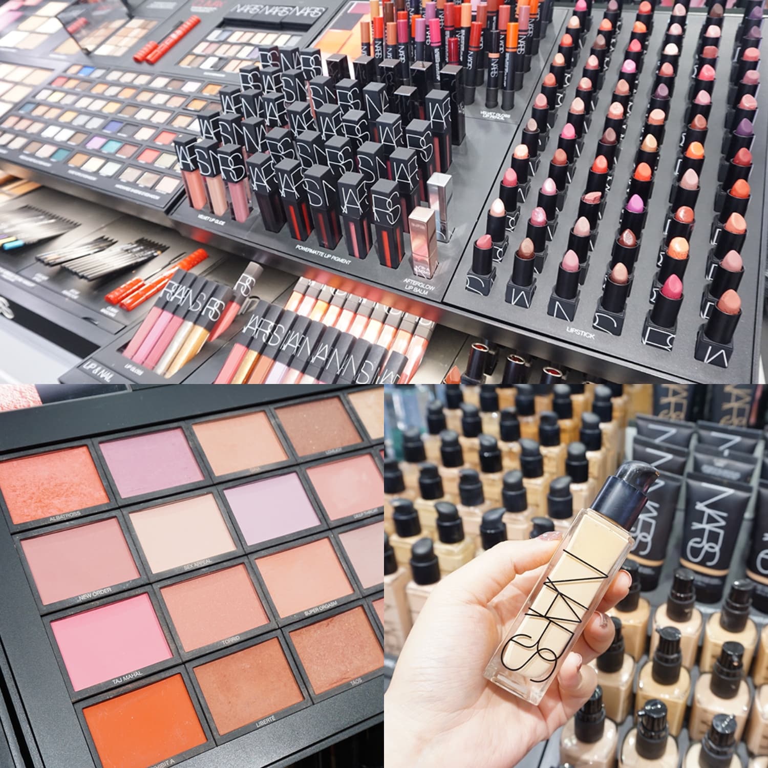 มีทั้งโซนเครื่องสำอาง อย่างโทนสีลิปสติก ที่หลากหลายลายตาไปหมด ให้เราได้ลองสวอชสีปาดแขน แบบที่ใช้แขน สอง ข้างก็ยังเอาไม่อยู่! ในส่วนของรองพื้น ก็มีให้เลือกหลากหลายเฉดสีมากๆ ตั้งแต่สีผิวอ่อนสุด ยังโทนสีผิวแทนเข้ม ถ้าใครไม่รู้ว่าจะเป็นโทนสีไหน ก็สามารถมาถาม มาลองกันได้เลย