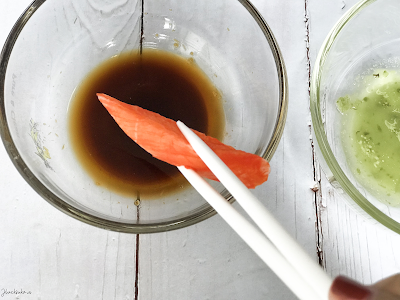 พอลองมาจิ้มกับซอสถั่วเหลืองที่เขาแถมมาให้
