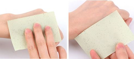 จะเห็นได้ว่ากระดาษนั้นไม่ติดผิว และไม่มีคราบติดกับกระดาษเลย จึงมั่นใจในการคุมมัน กันน้ำ กันเหงื่อได้ดีเลยค่ะ