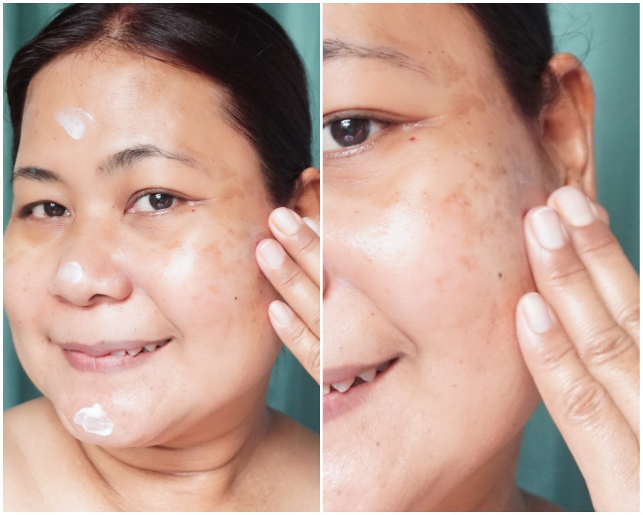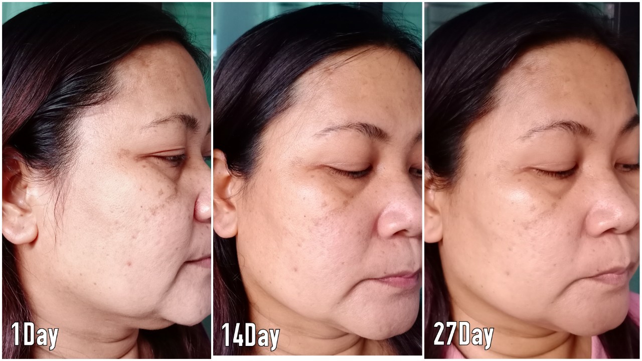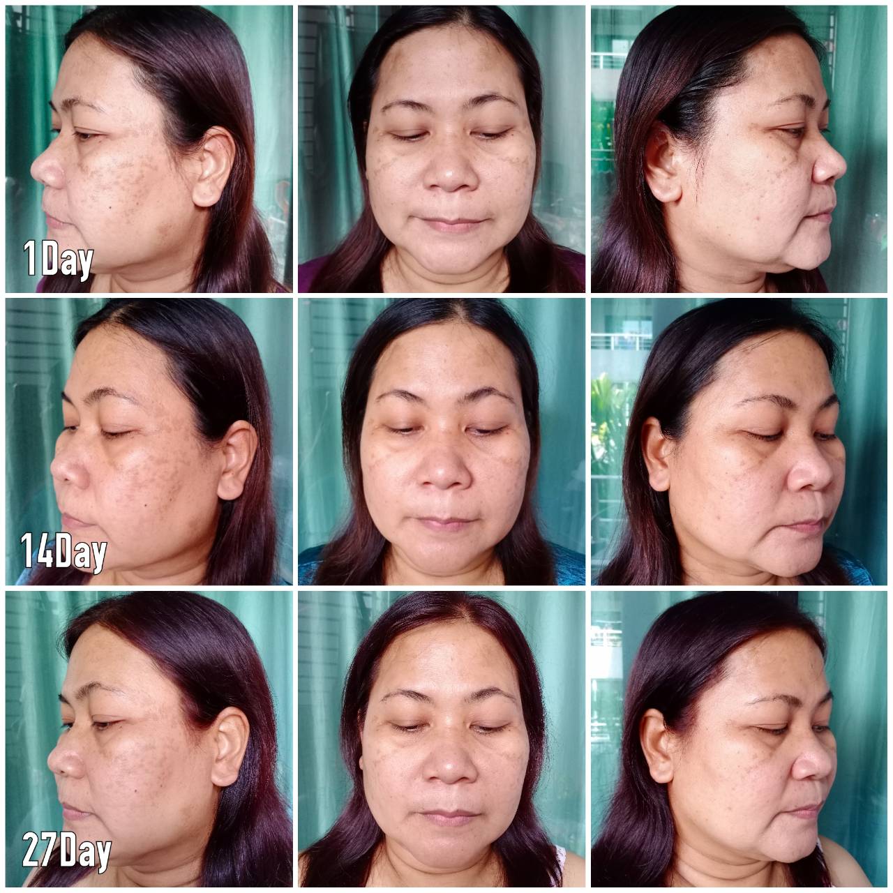 และนี่คือภาพเทียบชัดๆให้เห็นว่า ใน 14 วันแรกที่ใช้ ฝ้าแม่มีสีจางลงแบบสังเกตเห็นได้ชัดเลยค่ะ แม่เฟย์ชอบและใช้ต่อเนื่องมาจนวันนี้ ทุกภาพเฟย์ถ่ายด้วยโทรศัพท์มือถือและแสงธรรมชาติหมดเลยนะ คือสดจริง เรียลมากแม่!