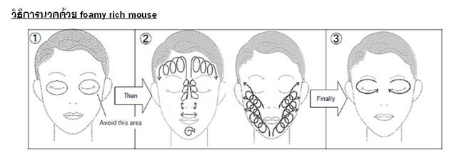 1. เกลี่ยเนื้อโฟมให้ทั่วใบหน้า หลีกเลี่ยงบริเวณรอบดวงตา**