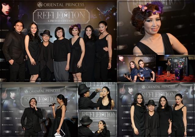 “เพราะเข้าใจเป็นอย่างดีว่าผู้หญิงไม่ได้มีแค่มิติเดียว แต่จะเลือกแสดงออกด้านไหนขึ้นอยู่กับวิธีการของพวกเธอ “โอเรียนทอล พริ้นเซส” จึงรังสรรค์ปรากฏการณ์แห่งสีสันครั้งใหม่ ที่จะเผยเสน่ห์เร้นลับเพื่อสะท้อนมิติ อันหลากหลายของผู้หญิงให้ประจักษ์แก่สายตาคนรอบข้างจนไม่อาจละสายตา ด้วยเครื่องสำอางคอลเลคชั่นล่าสุด “REFLECTION LIMITED EDITION” ซึ่งได้รับแรงบันดาลใจจากอำนาจแห่งสีสันอันเจิดจรัสจากราชินีผีเสื้อสายพันธุ์ที่งดงามที่สุด เพื่อให้สาวๆ ได้เลือกสะท้อนเสน่ห์ลึกล้ำจากภายใน ซึ่งก่อให้เกิดความงามอันน่าตราตรึง”