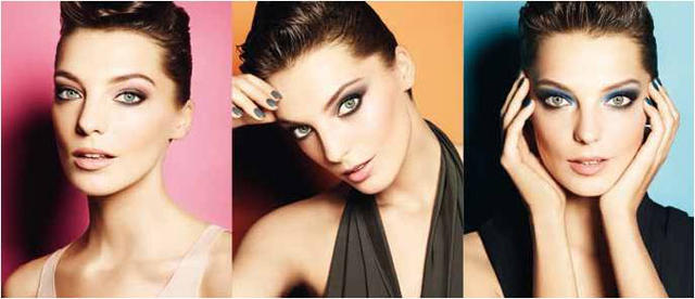 - เพิ่มมิติโดยตัดเส้นขอบตาให้คมเข้มขึ้นด้วยสีสำหรับเขียนขอบตา (3) เขียนเส้นขอบตาให้หนาขึ้นด้วยด้านสันแปรง โดยเฉพาะอย่างยิ่งที่หางตา เพิ่มความคมเข้มให้ถึงขีดสุดโดยใช้ Khôl pencil: เนื้อดินสอที่นุ่มจะแต่งตาให้คมเข้ม เปล่งประกายความงามจับใจ
