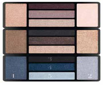 ในแต่ละตลับประดับด้วยอายแชโดว์ 4 สีและอายไลเนอร์อีก 1 สี ซึ่งส่งเสริมเติมเต็มซึ่งกันและกันอย่างลงตัว คุณจึงสามารถสร้างสรรค์ภาพลักษณ์ที่ต้องการได้ดุจมืออาชีพ เพียง 5 ขั้นตอนง่ายๆ แม้คุณจะเป็นมือใหม่ก็ตาม! แต่ละสีในตลับมีหน้าที่ของตัวเอง:
