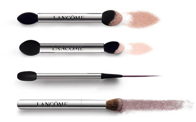 - ใช้สันแปรงลงสีขอบตา (3) ตัดเส้นตามแนวขนตาบนและล่าง โดยเขียนเส้นให้หนาขึ้นที่หางตา เพื่อให้รูปตาดูเรียวยาวขึ้น ทั้งยังเปิดโอกาสให้คุณเล่นกับความเข้มด้วยการลงสีได้ทั้งแบบแห้งหรือแบบเปียก ดินสอเขียนขอบตาสูตรกันน้ำ Khôl Hypnôse Waterproof pencil สีดำหรือสีน้ำตาล จะเพิ่มมิติให้ดวงตาเมื่อเขียนที่ขอบเปลือกตาด้านใน ก่อนลงทับด้วยสีเขียนขอบตาในตลับโดยไม่ต้องผสมน้ำ
