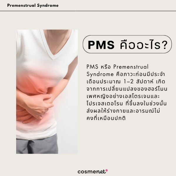 ช่วงก่อนประจำเดือนมาทีไร หลายคนคงรู้สึกเหมือนร่างกายกำลังเข้าสู่โหมดไม่ปกติ ทั้งอารมณ์เหวี่ยงง่าย หน้าบวม สิวขึ้น หรืออยู่ดี ๆ ก็อยากกินของหวานตลอดเวลา ซึ่งนี่อาจเป็นสัญญาณของ “ภาวะ PMS” หรืออาการก่อนมีประจำเดือนที่สาว ๆ หลายคนต้องเผชิญ โดยเกิดจากการเปลี่ยนแปลงของฮอร์โมนในร่างกายก่อนรอบเดือนจะมา วันนี้ Cosmenet* เลยจะพาไปรู้จักว่า PMS คืออะไร? เกิดขึ้นได้อย่างไร และอาการยอดฮิตที่สาว ๆ ส่วนใหญ่มักเจอกันมีอะไรบ้าง เพื่อให้เข้าใจร่างกายตัวเองมากขึ้นและรับมือกับช่วงนั้นของเดือน