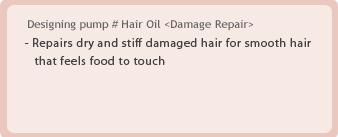 # Hair Oil <Damage Repair> is a treatment product meant to restore damaged hair. Suitable for application after washing hair or even during mid-day when hair is drained of natural serum.