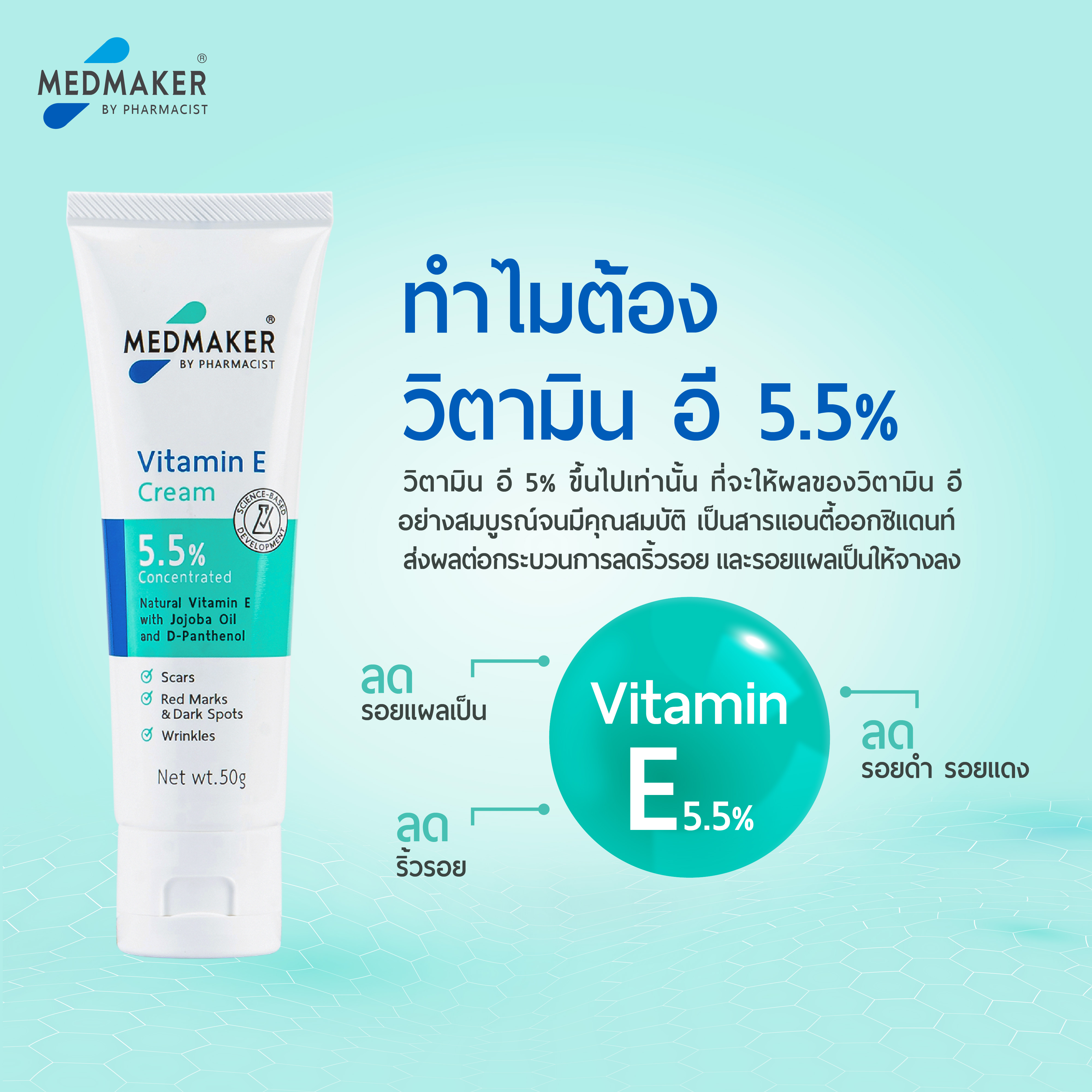 | ส่วนผสมสำคัญ | วิตามิน อี 5.5% หรือ 5500 IU ปริมาณเข้มข้นให้ผลของวิตามิน อี ได้อย่างสมบูรณ์ เป็นสารแอนตี้ออกซิแดนท์ ช่วยกระบวนการลดของเสียในเซลล์ผิวหนัง และเสริมสร้างการสร้างเซลล์ผิวใหม่ |